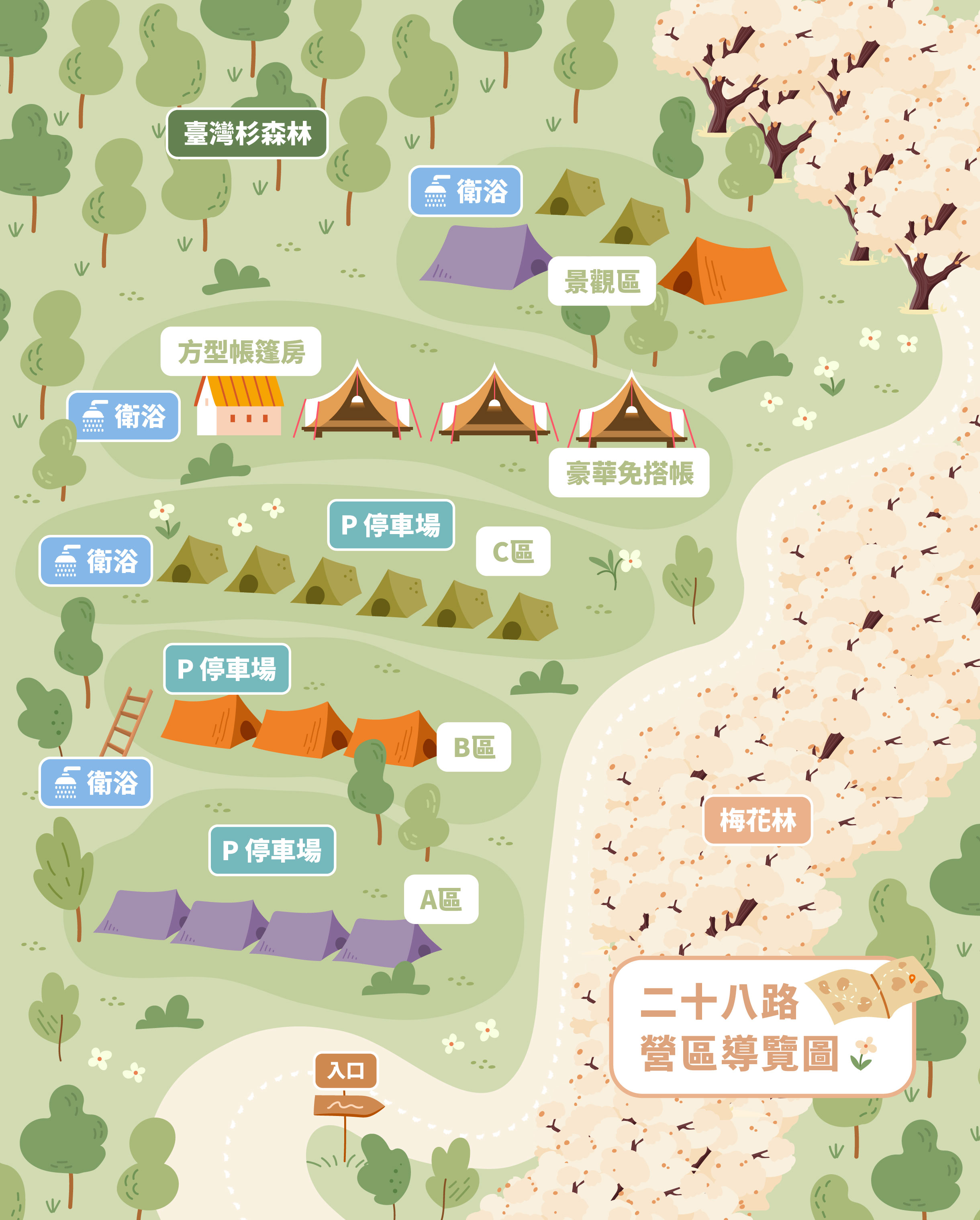 交通指引 出發 => 國道三號 => 轉國道六號 往埔里方向 => 於北山出口下交流道 => 接台147線道走龍南道路上山 => 二十八路露營區